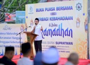 Narasiaktual.com – Sulsel – Ketua DPRD Kota Makassar Supratman menghadiri acara buka puasa bersama sekaligus penyerahan 500 paket sembako di Masjid Al-Kautsar Kecamatan Manggala pada