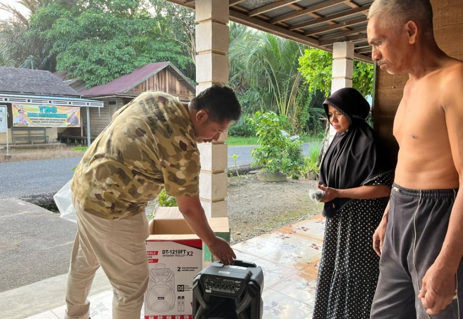 Bang Rizal memberikan speaker karena mengetahui ibu-ibu di Desa Ayuan itu sangat membutuhkan speaker.
