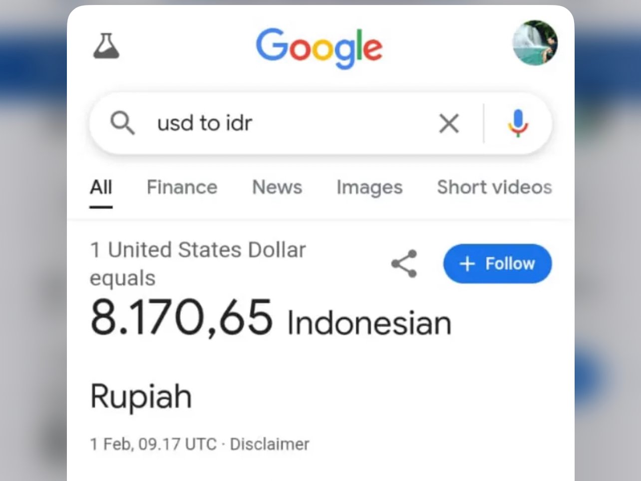 Tangkapan layar Google yang menunjukkan kurs tersebut pun viral di media sosial membuat banyak orang kaget sekaligus senang.